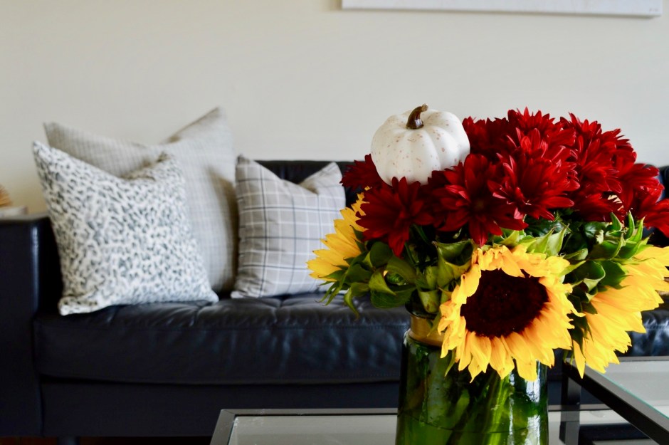 Hey friends! Happy Fall. Is it super warm where you live? We have been having 80 degree temps for a few weeks now and I love it, but do miss the cooler mornings. In any event, the temps didn’t stop me from freshening up our home for fall. I wanted a minimalistic vibe with a neutral theme but I couldn’t resist a few pops of color and some fresh, fall blooms.